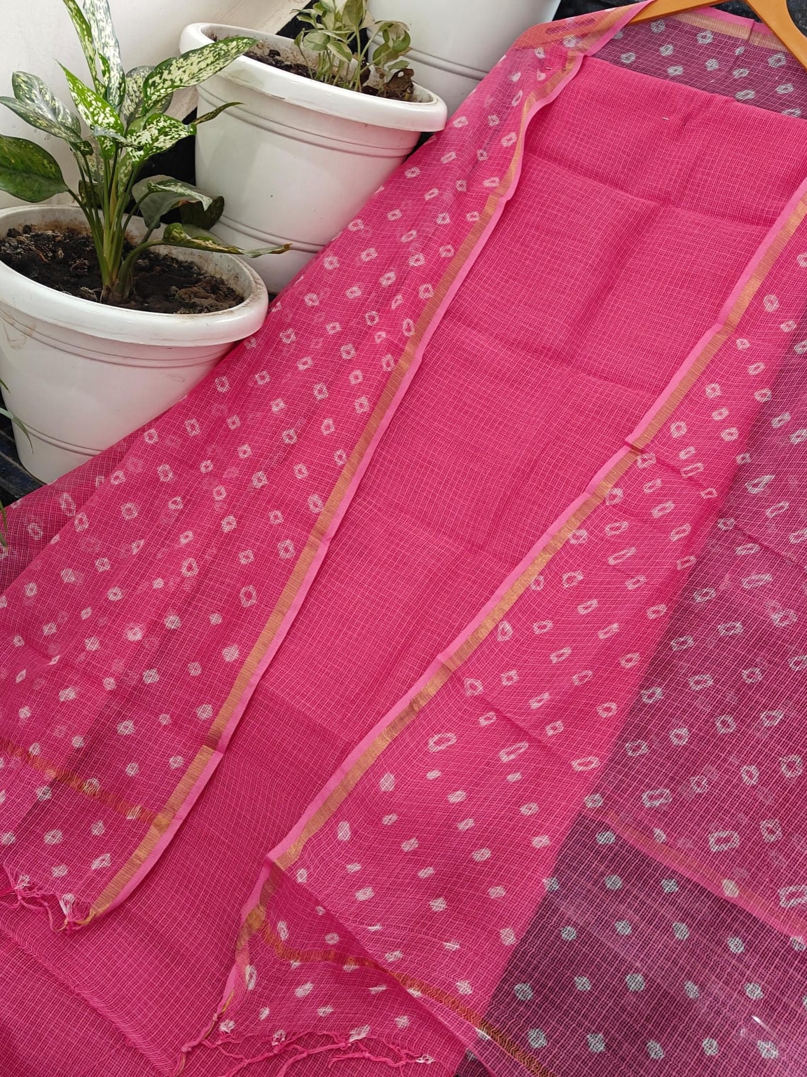 Kota Doriya Hand Tye & Dye Bandhej Dress Material. Kota Doriya Suit With Hand Tye& Dye Bandhej Duppata and Plain Kurta. The Material is Hand Woven Pure Cotton Kota Doriya Material. The Kurta and Duppata is MULBERRY MAUVE(PINK) Color and the Bottom will be MULBERRY MAUVE(PINK) Color.