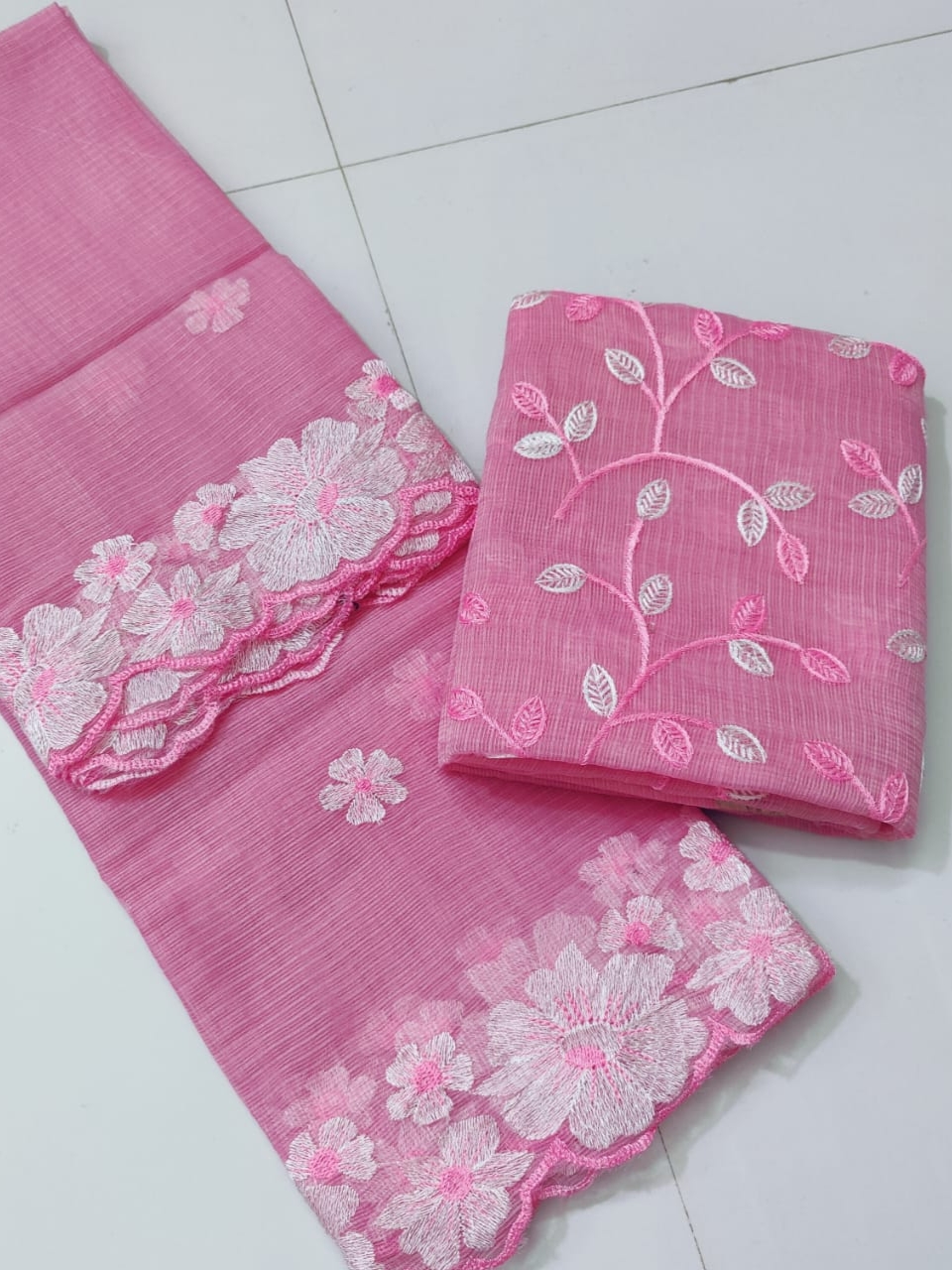 Kota Doriya Chickenkari Embroidery Dress Material. A Heavy looking Jaal Chicknekari Embroidery on Kurta with Cutwork Border Chickenkari Embroidery on the Duppata . The Material is Hand Woven Cotton Kota Doriya Material. The Dress Material is of BABY PINK Color and the Bottom will be BABY PINK Color.