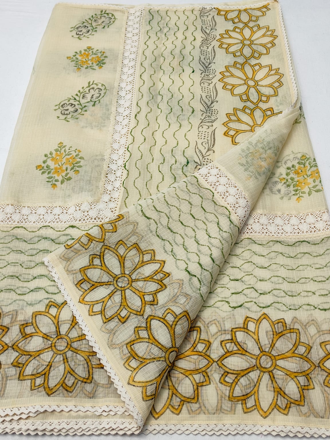 Be the first to review “Kota Doriya Crochet Lace Saree with Block Print” Cancel reply