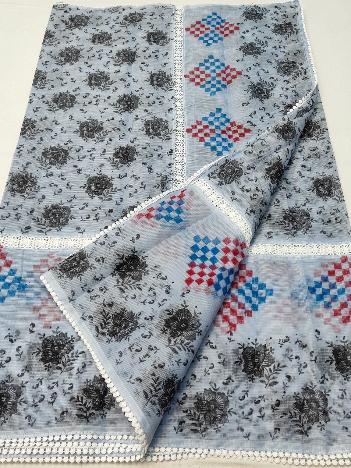 Be the first to review “Kota Doriya Crochet Lace Saree with Block Print” Cancel reply
