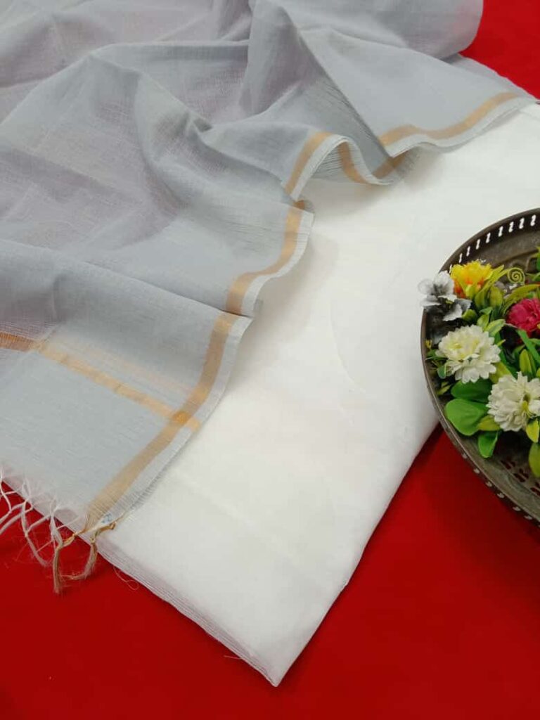 Kota Doriya is the name of a light woven fabric made of tiny woven squares (khat) which is still handwoven on traditional pit looms in Kaithoon near Kota in Rajasthan and in some of the surrounding villages. Kota Doriya Suits are made of pure cotton and silk and have square like patterns known as khats on them. The chequered weave of a Kota suit is very popular for their lightweight and comfortable wear. Kota Doriya Suits require Lining for stitching.