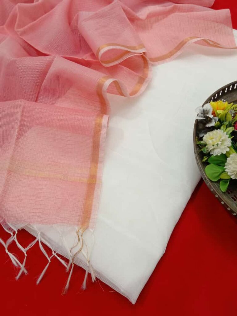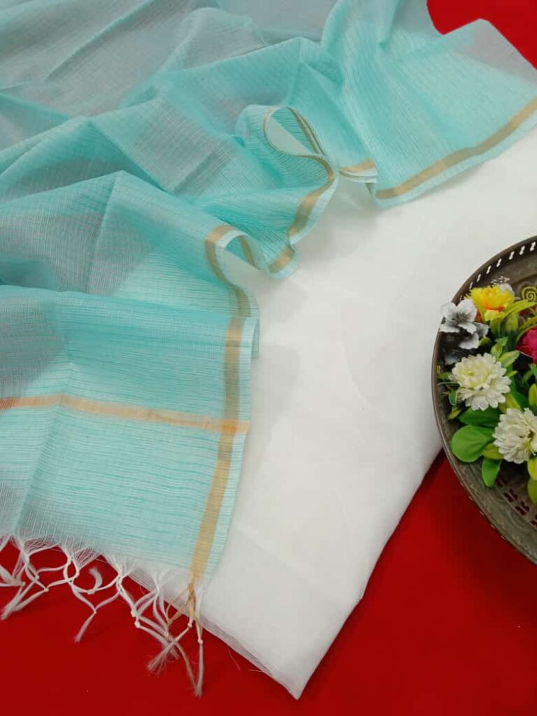 Kota Doriya is the name of a light woven fabric made of tiny woven squares (khat) which is still handwoven on traditional pit looms in Kaithoon near Kota in Rajasthan and in some of the surrounding villages. Kota Doriya Suits are made of pure cotton and silk and have square like patterns known as khats on them. The chequered weave of a Kota suit is very popular for their lightweight and comfortable wear. Kota Doriya Suits require Lining for stitching.