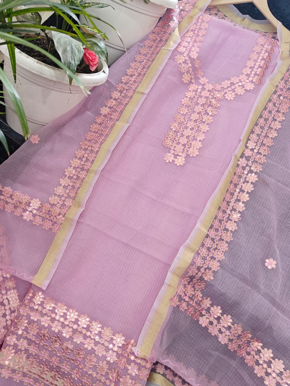 Kota Doriya Gotta Work Dress Material. A Very Classy And Elegant Gotta Patti Work on Kurta and Duppata on Kota Doriya Materail. The Material is Hand Woven Cotton Kota Doriya Material. The Kurta and Duppata is LAVENDER(PURPLE) Color and the Bottom will be LAVENDER(PURPLE) Color.
