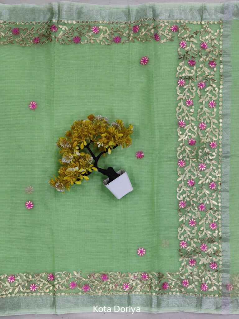 Kota Doriya is the name of a light woven fabric made of tiny woven squares (khat) which is still handwoven on traditional pit looms in Kaithoon near Kota in Rajasthan and in some of the surrounding villages. Kota Doriya Suits are made of pure cotton and silk and have square like patterns known as khats on them. The chequered weave of a Kota Saree is very popular for their lightweight and comfortable wear.